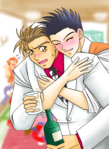 | 加山の事を後ろからぎゅっと抱きしめてる大神さん 020923完成 4444HITで浅葱洋様に差し上げたイラスト。 サクラ大戦ではじめて頂いたキリリクですv 「後ろから」大神さんがぎゅう、というのがなかなか想像できなかったんですよ。 なんか、大神さんて「正面から!」ってイメージがないですか? 後ろからとなると素の状態じゃないよねぇ〜…と、いうことで酔っ払いに(笑) 候補は2、3種ありましたが一番かわいかったのでこれにさせて頂きました(笑) 状況の説明をしますと、宴会中です。花組皆います(笑) 嬉しいけど後が恐ろしい加山…といった感じで(笑) 酒は飲ませようとしてる訳ではなく取り上げてるんです(笑) なかなかその辺上手くかけませんね〜〜(^^;) 今、私の中では「困ってる加山」マイブ-ム中なのでこんな事になってしまいました(笑) 出来はどうあれ、自分では大変楽しく描かせて頂きました(^^) リク下さった浅葱さま、本当にありがとうございました〜vv |